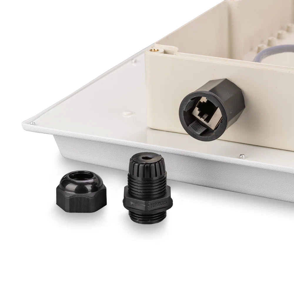 На задней стенке антенны размещены 4 высокочастотных разъёма SMA (female). В комплект поставки входят 4 пигтейла SMA-male (угловой) с разъемами SMA(male),