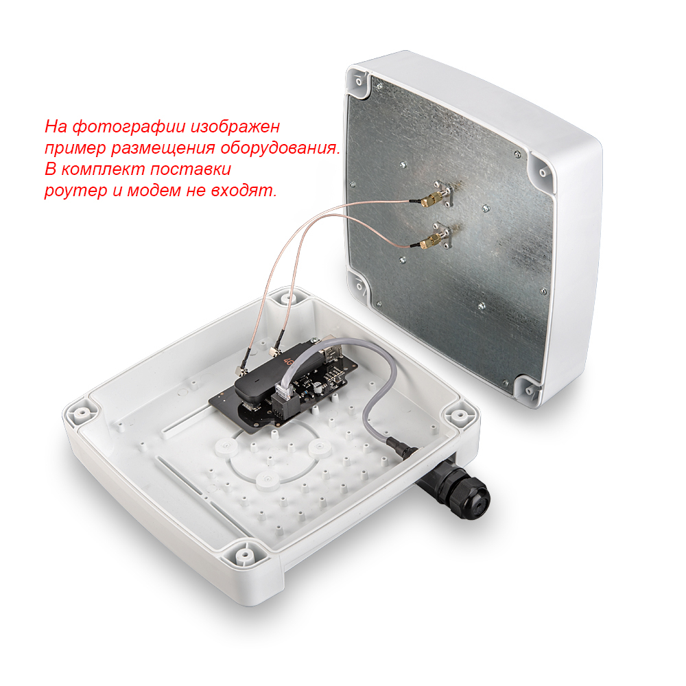 Антенна совмещена с герметичным боксом, в который помещается роутер и 3G/4G модем (приобретается отдельно).