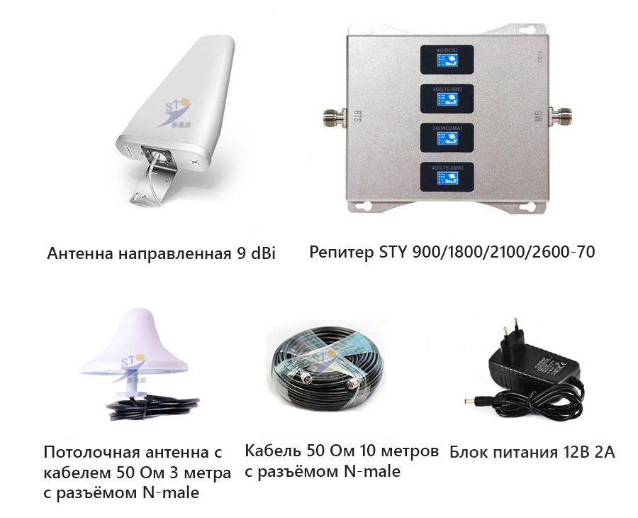 В комплект для усиления сотовой связи STY 900/1800/2100/2600-70 входит: