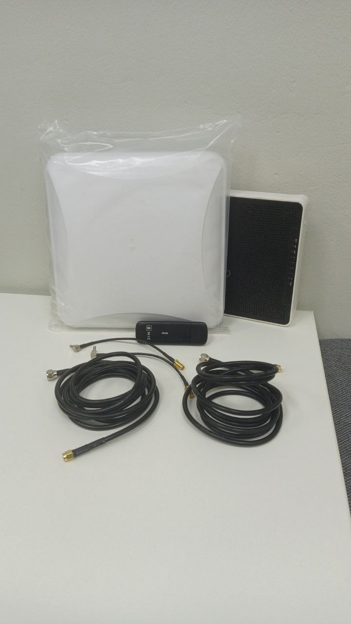 В комплекте внешняя антенна, кабели 5м, пигтейлы для подключения к модему и роутер.